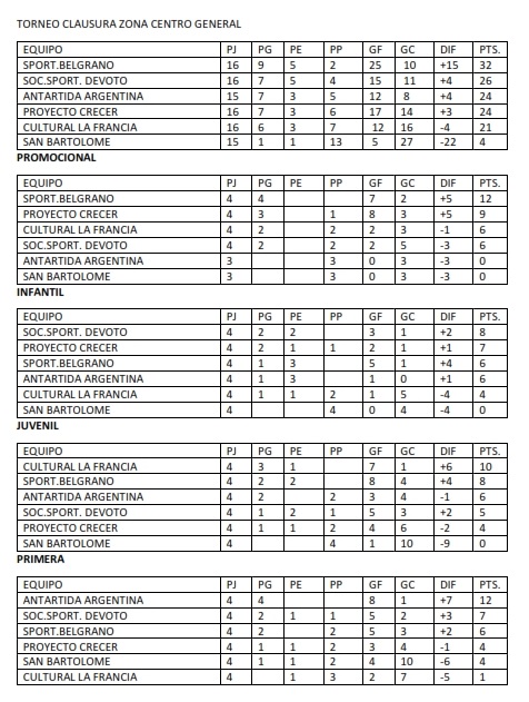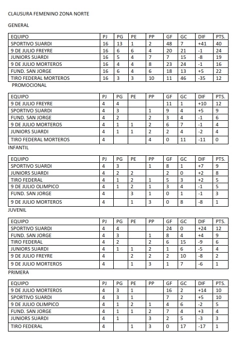 TABLAS GENERALES DE FUTBOL FEMENINO